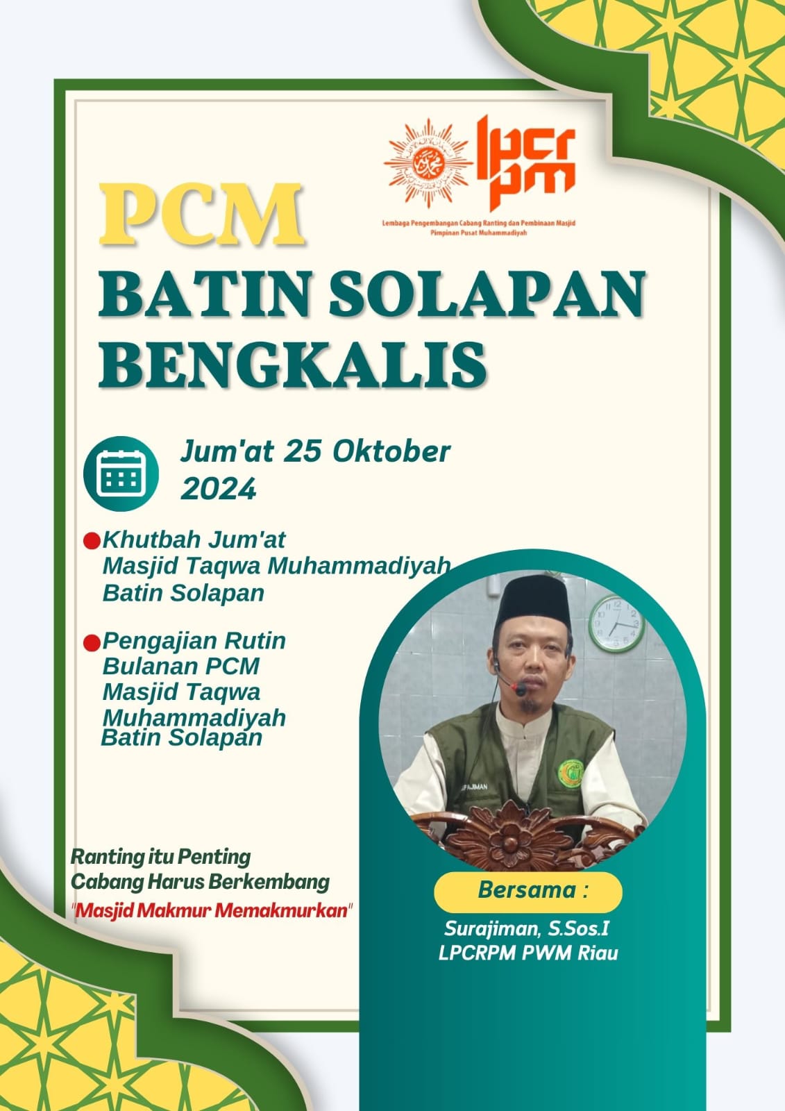 Khutbah Jum’at Mesjid Taqwa Muhammadiyah dan Pengajian Rutin Bulanan PCM Batin Solapan